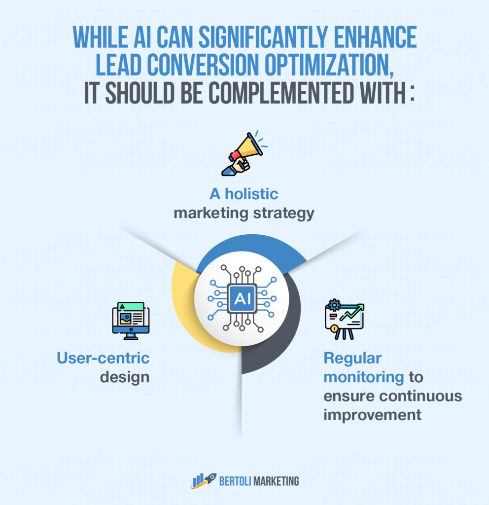 Remember, while AI can significantly enhance lead conversion optimization, it should be complemented by a holistic marketing strategy, user-centric design, and regular monitoring to ensure continuous improvement. By incorporating these additional steps, you can harness the power of AI to continuously optimize your website for lead conversion, provide a personalized user experience, and drive meaningful business results. It’s essential to monitor, analyze, and interpret the results to make informed decisions and adapt your approach accordingly.