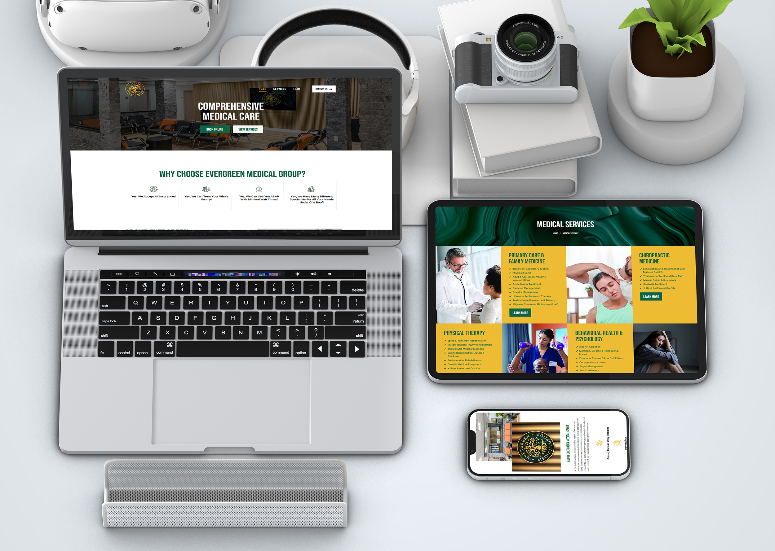 The redesigned website introduced a clean, professional look with intuitive navigation and service pages built to clearly showcase Evergreen’s specialties. Strategic calls-to-action were integrated throughout the site to encourage appointment requests, while the layout was optimized for both desktop and mobile users to ensure accessibility. The redesign also emphasized local SEO, making it easier for nearby patients to find Evergreen Medical Group when searching for medical services in their area.