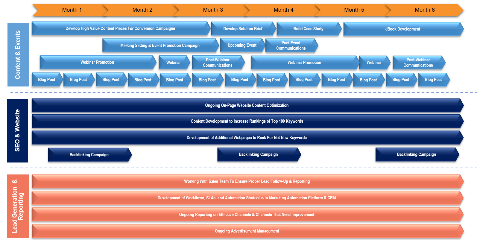 Here’s the structured approach we’ll put in place within your organization to drive measurable results. Together, we’ll define and target your Total Addressable Market (TAM), optimize your website for maximum conversion, and build integrated demand generation campaigns designed to deliver meaningful engagement and revenue growth.
